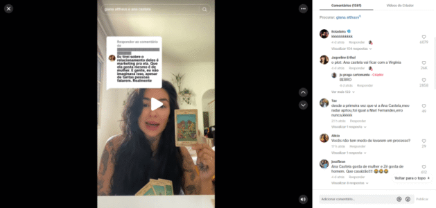 A conclusão revelada pela dona do perfil após tirar as cartas foi a seguinte: “Existe meio que um tabu, uma dificuldade com a sexualidade. Ana Castela, realmente… Não é que ela tem dúvida, é que ela não consegue acessar isso ainda.”