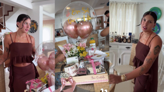 A cantora Ana Castela, 21, recebeu uma cesta de presente com remetente desconhecido. O mistério aumentou quando ela leu a cartinha, que dizia que só seus amigos sabiam quem enviou o mimo.