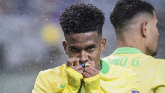 O Brasil chegou com perigo nos minutos iniciais em chutes de Rodrygo e Vinicius Junior, até que o primeiro gol foi marcado, aos 13 minutos, com Estêvão