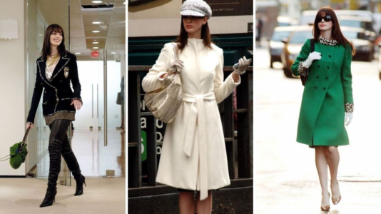 Na produção, em que interpretou Andy Sachs, ela apresentou diversos figurinos inesquecíveis, como a blazer acompanhado de bota de cano super alto, acompanhado de uma bolsa de crochê autêntica. Ou ainda, um trench coat com boina, luvas e salto.