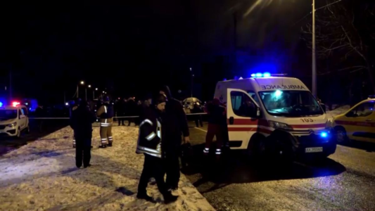 Trabalhadores removeram cacos de vidro e escombros de um prédio residencial próximo, atingido pelo atentado. A Rússia lançou três bombas guiadas, uma das quais atingiu uma via central da cidade, disse Syniehubov.