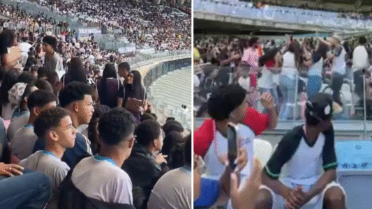 Um aulão de Inteligência Artificial realizado no Mineirão, em Belo Horizonte, terminou em pancadaria entre estudantes na tarde desta quarta-feira (19). Vídeos que circulam nas redes sociais mostram alunos brigando nas arquibancadas. A Polícia Militar foi acionada para conter a confusão.