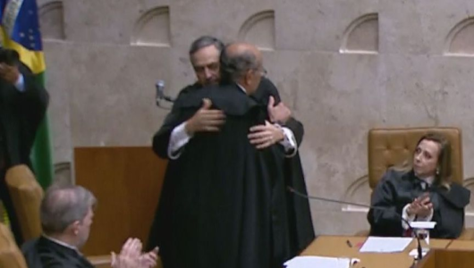 Gilmar respondeu destacando a importância do trabalho de Barroso em “um dos momentos mais difíceis que a Corte enfrentou” e afirmou que “não guarda mágoas”. Em seguida, o ministro se levantou e abraçou o colega.
