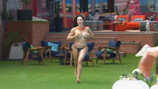 Como havia prometido antes do Paredão, Jordana fez questão de pular na piscina da casa do BBB 26 sem a parte de cima do biquíni, na tarde desta quarta-feira (4).