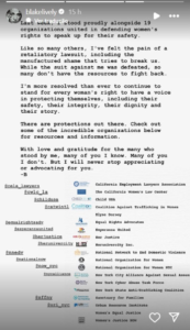“Embora o processo contra mim tenha sido derrotado, muitas não têm recursos para reagir”, acrescentou, afirmando depois que está “mais determinada do que nunca a continuar a defender o direito de todas as mulheres de terem voz para se protegerem”. “Incluindo a sua segurança, integridade, dignidade e a sua história”, continuou. Veja a publicação na íntegra: