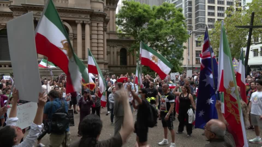 Centenas de pessoas se reuniram em frente à prefeitura de Sydney, na Austrália, nesta quarta-feira (14) para demonstrar apoio aos manifestantes no Irã que enfrentam repressão por parte dos líderes religiosos.