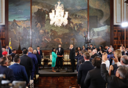 Momentos após Rodríguez fazer o juramento, ela foi abraçada pelo embaixador chinês na Venezuela, Lan Hu, seguida pelo embaixador russo Sergey Melik-Bagdasarov. O embaixador iraniano Ali Chegini então se inclinou em direção a ela com as mãos postas.