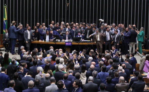 O colegiado analisa a conduta dos parlamentares durante a manifestação que bloqueou os trabalhos do plenário por mais de 30 horas em protesto à prisão domiciliar do ex-presidente Jair Bolsonaro (PL).