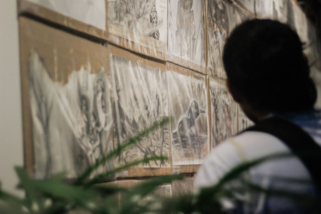 Nomeado de “Cinzas da Floresta”, o acervo abriga cerca de 300 obras de ativistas do Brasil e de outros 20 países, paredes da Casa COP do Povo, são tomadas por retratos feitos com carvão e cinzas de incêndios florestais.
