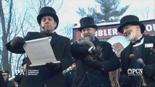 Punxsutawney Phil, a marmota símbolo da meteorologia, viu sua sombra quando foi retirada de sua toca quentinha e lançada ao ar gélido na manhã de segunda-feira (2). Segundo Phil, isso significa que mais seis semanas de inverno estão por vir nos Estados Unidos.