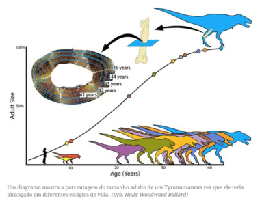 Diferente dos anéis de crescimento das árvores, os anéis de crescimento dos dinossauros capturam apenas os últimos 10 a 20 anos da vida de um indivíduo.