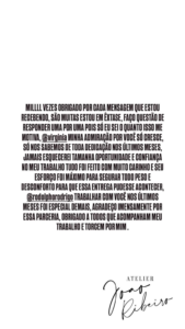 Conclui dizendo sobre a questão de peso da fantasia: “Seu esforço foi máximo para segurar todo peso e desconforto para que essa entrega pudese acontecer”.