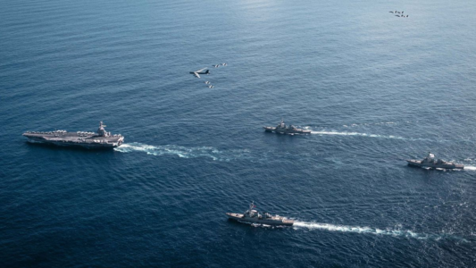 O grupo de ataque do Gerald Ford inclui ainda os destróieres de mísseis guiados USS Bainbridge e USS Mahan e o navio de comando integrado de defesa aérea e antimíssil USS Winston S. Churchill.