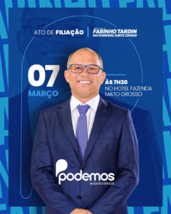 O deputado estadual Fabinho Tardin oficializa, neste sábado (7), sua filiação ao partido Podemos, em evento que será realizado no Hotel Fazenda Mato Grosso, em Cuiabá.