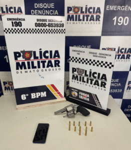 Policiais militares da Força Tática do 6º Comando Regional apreenderam, na tarde desta sexta-feira (27.2), um revólver calibre .38 e 12 munições intactas durante uma ação integrada em Cáceres (a 220 km de Cuiabá). Um adolescente de 17 anos foi apreendido em flagrante por porte ilegal de arma de fogo de uso permitido.