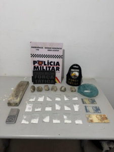 Policiais militares da Força Tática do 7º Comando Regional de Tangará da Serra (à 373 km de Cuiabá) prenderam, nesta sexta-feira (21.11), um homem, de 21 anos por tráfico ilícito de drogas. Vinte e cinco porções análogas à maconha e cocaína foram apreendidas com o suspeito.