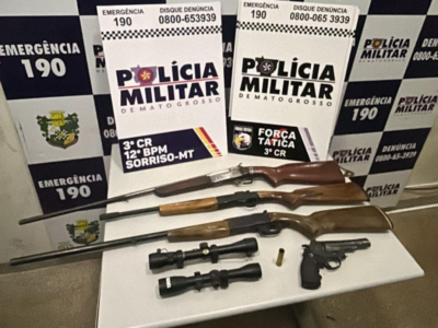 Policiais militares da Força Tática do 3º Comando Regional e do 12º Batalhão de Sorriso prenderam um homem, de 58 anos, por posse irregular de arma de fogo, na tarde desta quarta-feira (21.1). Com o suspeito, foram apreendidos um simulacro de revólver, uma carabina, duas espingardas e acessórios.