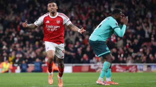 Ainda assim, o Arsenal foi salvo quando Yerson Mosquera desviou a bola para o próprio gol sob pressão de Gabriel Jesus, aos 49 minutos do segundo tempo, garantindo a vitória dos líderes do campeonato.