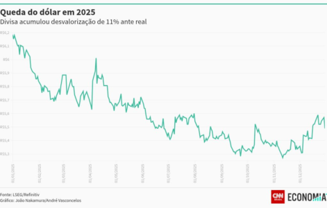 O cenário é bastante diferente do observado no início do ano, quando a moeda norte-americana era negociada acima de R$ 6, na esteira da forte desvalorização do real nos últimos meses de 2024. O dólar encerrou 2024 com valorização de 27,3%.