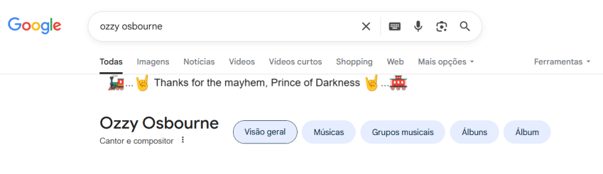 Na plataforma, ao digitar o nome do astro nas buscas, um trem com referência à faixa “Crazy Train” aparece com a seguinte mensagem: “Obrigado pelo caos, Príncipe das Trevas”.