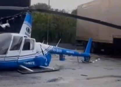 Um helicóptero da TV Bandeirantes caiu enquanto realizava um pouso de emergência próximo à Via Dutra, na altura de Guarulhos, na Grande São Paulo.