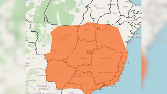 O alerta do Inmet abrange 12 estados e o Distrito Federal, atingindo áreas de Goiás, Minas Gerais, Bahia, Paraná, Tocantins, Mato Grosso, Mato Grosso do Sul, Espírito Santo, São Paulo, Rio de Janeiro, Maranhão e Piauí, além do Distrito Federal.