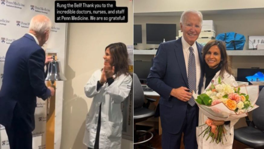 A filha de Biden, Ashley, postou um pequeno vídeo de seu pai tocando o sino, uma tradição para muitos pacientes com câncer ao concluir uma sessão de tratamento.