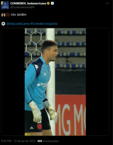 Ao publicar um vídeo de aquecimento, o perfil oficial do torneio na rede social X (@SudamericanaBR) usou imagens do goleiro reserva Daniel Fuzato enquanto dizia, na legenda, que era Léo Jardim, o titular do time.