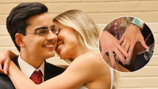 Dudu Camargo dá aliança de namoro a Saory Cardoso ao vivo