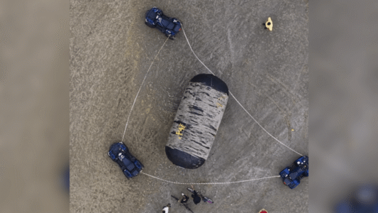 Rômulo Venâncio, que é piloto de drones, fez um registro em vídeo do objeto inusitado e divulgou em suas redes sociais. Ele afirma que a boia surgiu na costa por volta das 15h.
