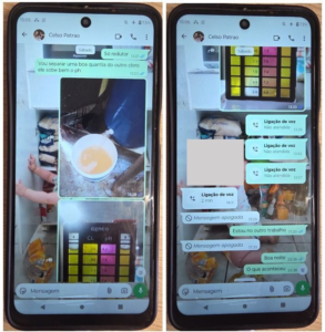 As imagens mostram as mensagens e, posteriormente, todas as enviadas pelo dono apagadas. Em depoimento, Celso confessou ter apagado as conversas trocadas com o manobrista no dia do ocorrido, justificando o ato por “desespero”.