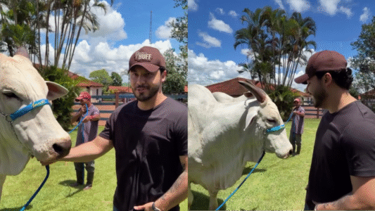O cantor Murilo Huff, 30, se encontrou vez a vaca de R$ 54 milhões que comprou em novembro de 2025. O vídeo do momento foi divulgado nas redes sociais da fazenda Mata Velha, em Uberaba, Minas Gerais, onde o animal vive.