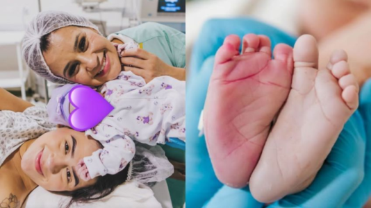Sem mostrar o rostinho da bebê, Rayza compartilhou a primeira imagem ao lado da recém-nascida após o parto, seguida por uma foto dos pezinhos.