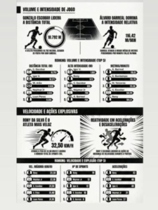 O jogador ainda aparece em 2° entre os com mais intensidade e em 5° nos que correram mais metros por minutos.