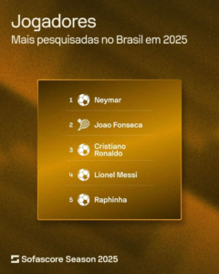 Em um ano de altos e baixos, o atacante Neymar foi o atleta mais buscado no ano de 2025 entre todos os esportistas do mundo. As informações são da plataforma Sofascore.