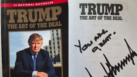 O livro “A Arte da Negociação”, de autoria de Trump, continha uma dedicatória escrita pelo presidente americano na contracapa: “Você é ótimo”.