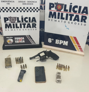 Policiais militares do 6º Batalhão conduziram cinco pessoas em flagrante, na noite desta quarta-feira (4.5), suspeitos de integrarem uma facção criminosa, em Cáceres. Os militares apreenderam um revólver, 101 munições de calibres diversos, um carregador e uma porção de maconha. Entre os detidos estão três homens, de 15, 16 e 23 anos e duas mulheres, de 13 e 14 anos.