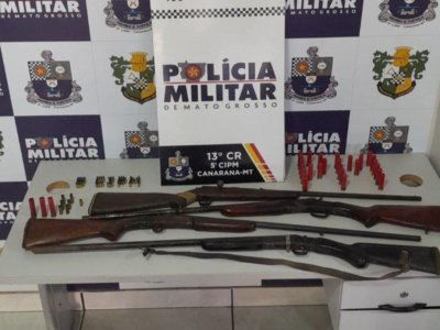 A Polícia Militar prendeu em flagrante um homem de 62 anos, suspeito de ameaça e porte ilegal de arma de fogo, neste domingo (13.7), na zona rural de Canarana. Na ação, a PM apreendeu quatro armas longas e 90 munições.