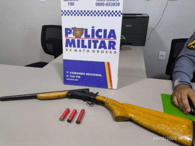 A Polícia Militar prendeu um homem, de 50 anos, por tentativa de homicídio, nesta segunda-feira (6.10), no município de Sapezal. O suspeito foi preso em flagrante após atirar em seu vizinho com uma espingarda. A arma utilizada no crime e cartuchos de munição foram apreendidos.