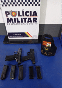 Policiais militares da 1ª Companhia da Polícia Militar prenderam, na noite desta sexta-feira (20.2), uma mulher de 33 anos por porte irregular de arma de fogo, em Mirassol D’Oeste. Na residência da suspeita, os militares apreenderam duas pistolas calibre 9mm e cinco carregadores de munição.