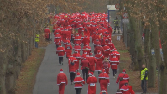 Para as crianças, havia também uma corrida de gorros de elfo de um quilômetro e uma corrida de revezamento com um saco do Papai Noel como bastão.