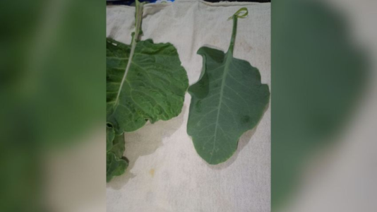 À esquerda, folha da couve que é comumente consumida na culinária brasileira; à direita, folha da “falsa couve” • Polícia Militar de Minas Gerais