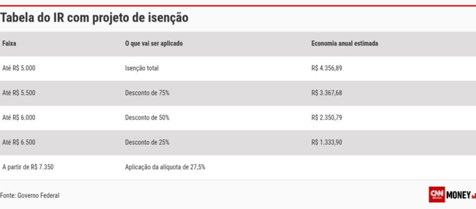 Não só o contribuinte que ganha até R$ 5 mil será beneficiado. Na proposta original do governo, uma faixa de descontos no IR era apontada para quem recebe até R$ 7 mil.