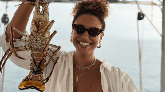 “A vida me leva de barco e ainda serve lagosta. Reclamar como?”, brincou na legenda.