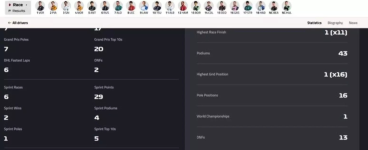 A falha ficou no ar por poucos minutos, mas foi o suficiente para viralizar. “Quando me mandaram, eu não acreditei. O site oficial da Fórmula 1 já mostra, nas estatísticas do Lando Norris, ele como campeão do mundo”, escreveu uma página no X ao compartilhar a captura de tela.