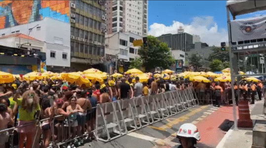 Foliões passaram mal e tiveram que ser socorridos por conta do empurra-empurra causado pela superlotação do Bloco Skol, neste domingo (8), em São Paulo.