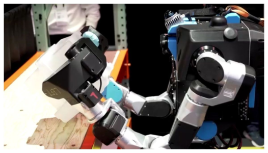 “Isso serve a dois propósitos. Primeiro, usamos essa abordagem para treinar as habilidades do robô. Não há programação, não há C++, não há Python nesse processo”, continuou.
