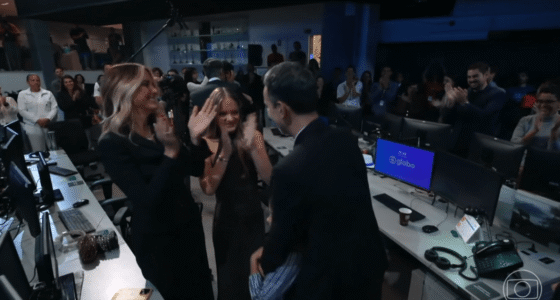 Nos últimos minutos do “JN”, Tralli foi abraçar a família, que estava visivelmente emocionada com o momento.