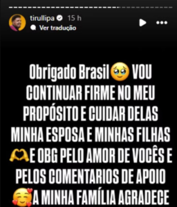 Apesar da repercussão, Tirullipa diz ter recebido mensagens de apoio de amigos, colegas de profissão e fãs. “Minha família agradece”, repetiu, ressaltando que a união e o suporte recebido têm sido fundamentais neste momento.