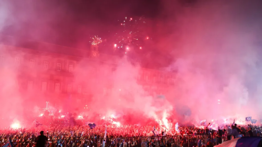 O Napoli confirmou na noite de sexta-feira (23) a conquista do quarto título do Campeonato Italiano ao vencer o Cagliari por 2 a 0, na última rodada da competição. A comemoração começou ainda no Estádio Diego Armando Maradona, onde o troféu foi entregue à equipe, e se estendeu pela madrugada nas ruas de Nápoles, em clima de muita festa.